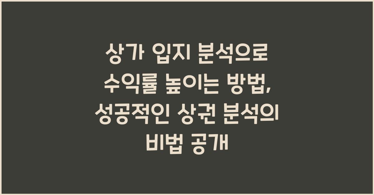 상가를 운영하며 수익을 극대화하는 것은 모든 자영업자들이 꿈꾸는 목표입니다. 그러나 상권이 잘 발달한 지역을 선택하는 것이 얼마나 중요한지 간과하기 쉽습니다. 직접 겪어본 경험을 통해 상가 입지 분석으로 수익률을 높이는 방법과 핵심 포인트를 공유하고자 합니다. 이를 통해 여러분의 상업적 성공에 도움이 되었으면 합니다.