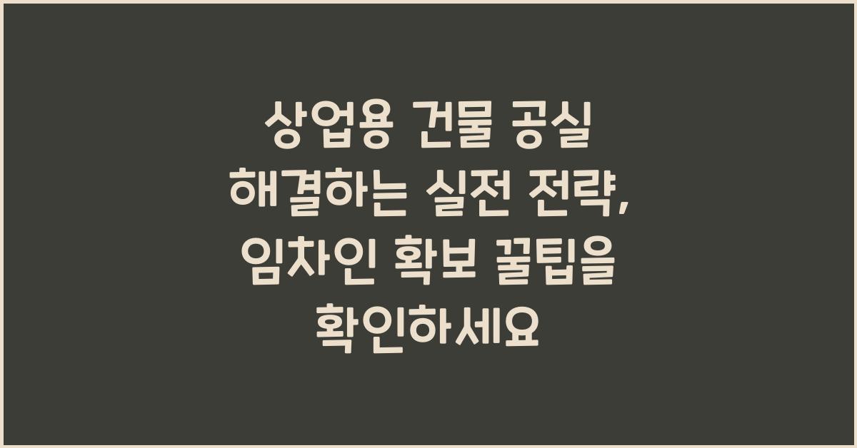상업용 건물의 공실 문제는 투자자와 건물주에게 큰 부담이 됩니다. 누구나 한 번쯤 공실로 인한 손해를 경험해 본 적이 있을 것입니다. 그래서 이번 글에서는 저의 직접적인 경험을 바탕으로 상업용 건물 공실 문제를 해결하기 위한 실전 전략과 임차인 확보에 관한 꿀팁을 공유하고자 합니다. 공실 문제에 대한 이해가 필요하다면, 이 글을 끝까지 읽어보세요!