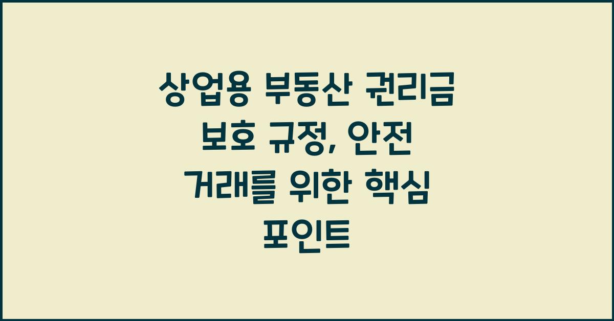 상업용 부동산을 거래할 때, 권리금 보호 규정은 반드시 알아야 할 필수 정보입니다. 제가 이러한 규정을 제대로 이해하지 못했을 때, 예상치 못한 손실을 경험한 적이 있습니다. 독자 여러분도 저와 같은 실수를 피하고 싶으시다면, 이 글을 통해 중요한 정보와 안전 거래 핵심 포인트를 확인해보세요!