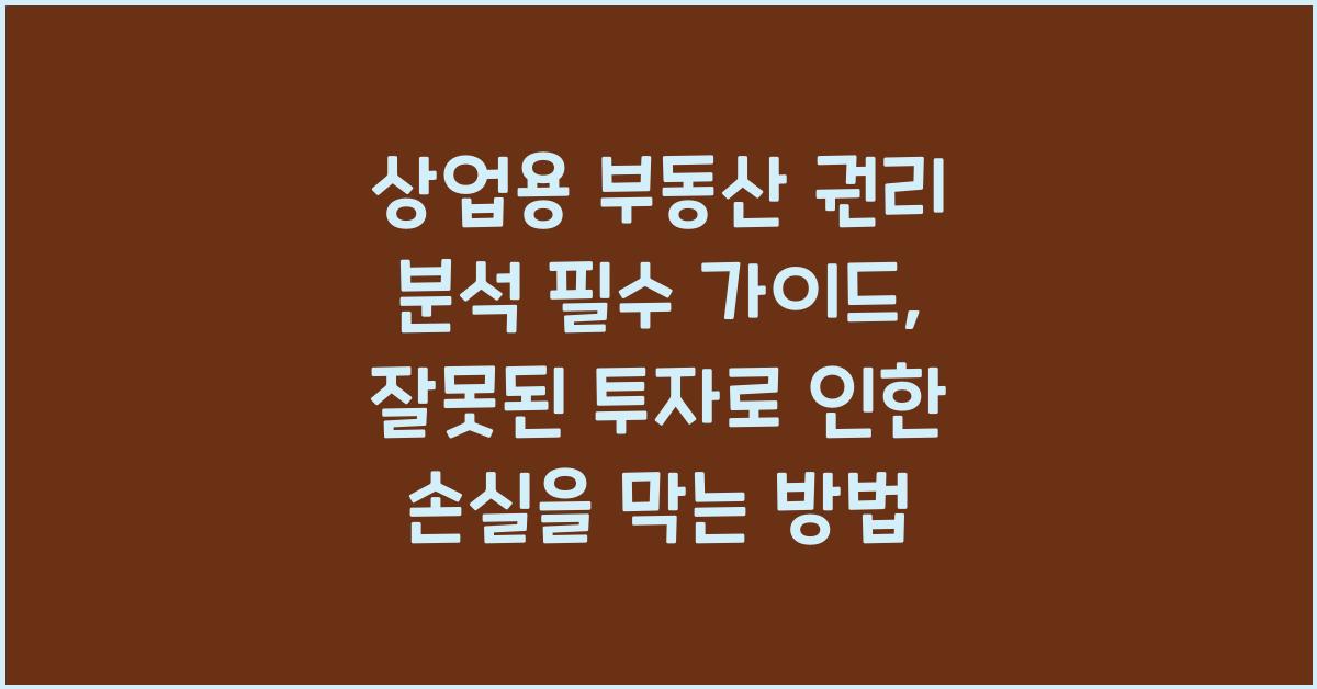 상업용 부동산에 투자할 때 많은 사람들이 간과하는 부분이 바로 권리 분석입니다. 제가 처음 투자했을 때는 이 부분을 제대로 조사하지 않아서 큰 고통을 겪었던 경험이 있습니다. 이 글을 통해 상업용 부동산 권리 분석의 중요성과 분쟁을 예방하는 방법을 함께 알아보도록 합시다. 직접 겪은 경험을 바탕으로 여러분에게 유용한 팁을 드리려 하니, 주의 깊게 읽어보세요.